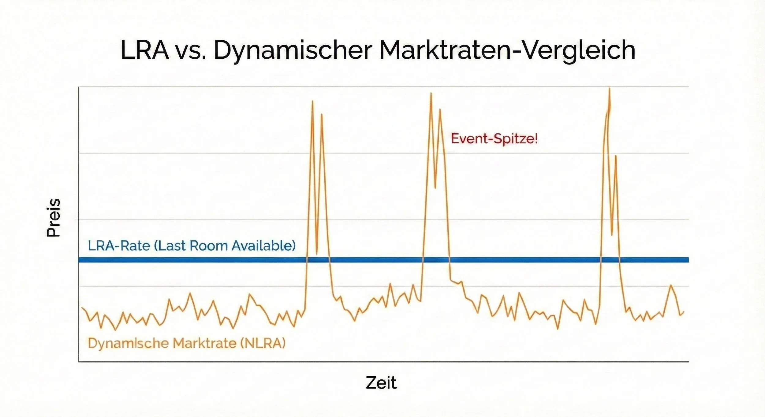FeatureLRA (Last Room Available)NLRA (Non-Last Room Available)Verfügbarkeits-Garantie100% (bis zum letzten Standardzimmer)0% (Hotel entscheidet nach Yield-Lage)PreissicherheitExtrem hoch. Schützt vor Spitzen.Gering. Hohes Risiko für „Rate Switching“ auf BAR.EinkaufspreisPremium (teurer)Discounted (günstiger)Ideal fürKey-Accounts, C-Level, HQ-Standorte, Messe-StädteProjekt-Teams, Backoffice, flexible Reisen, Sekundär-Standorte